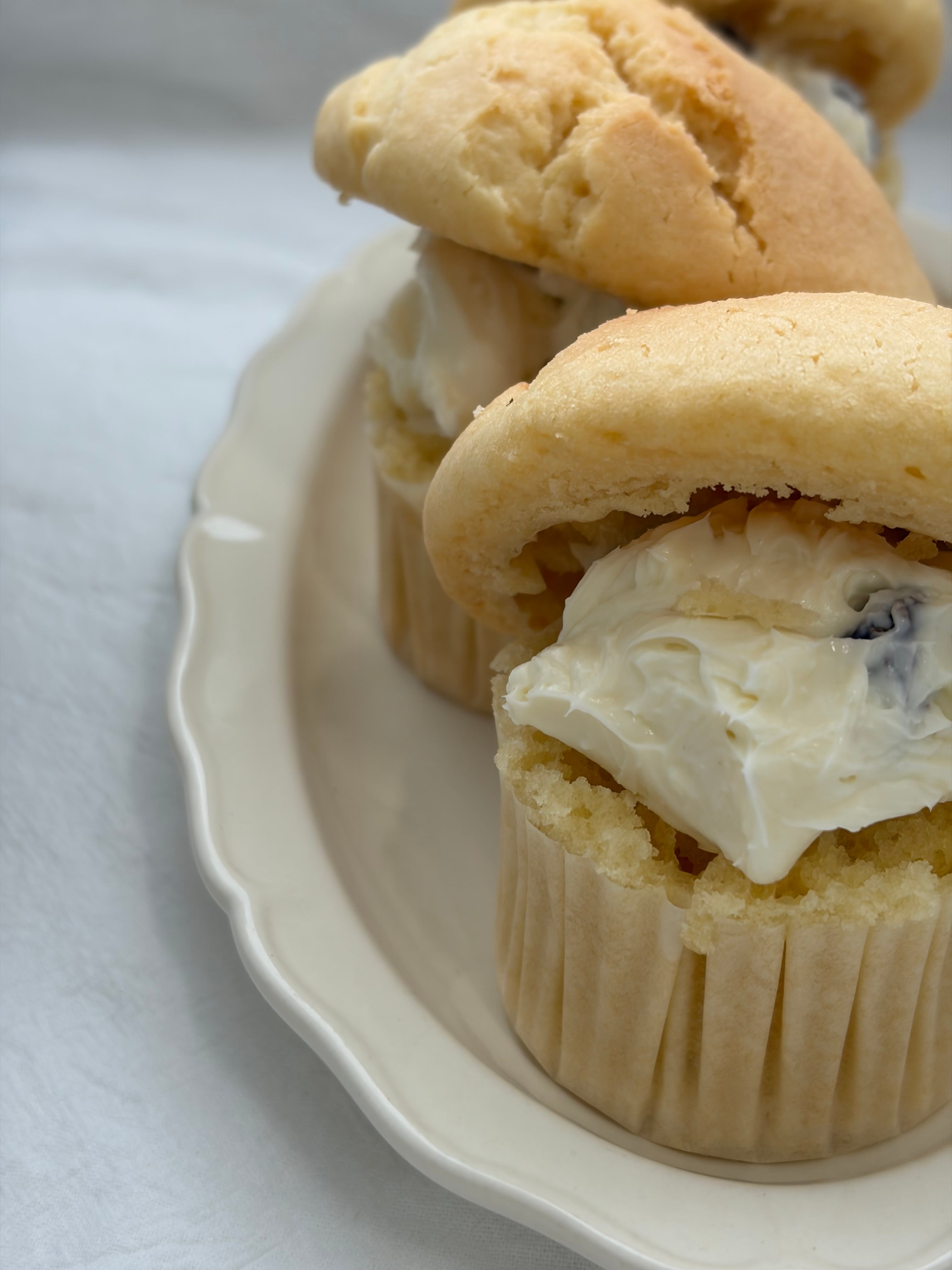 ラム酒にじっくり漬けたレーズンを混ぜ込んだチーズクリームをたっぷりとはさみます。冷やして食べるご褒美マフィンです。